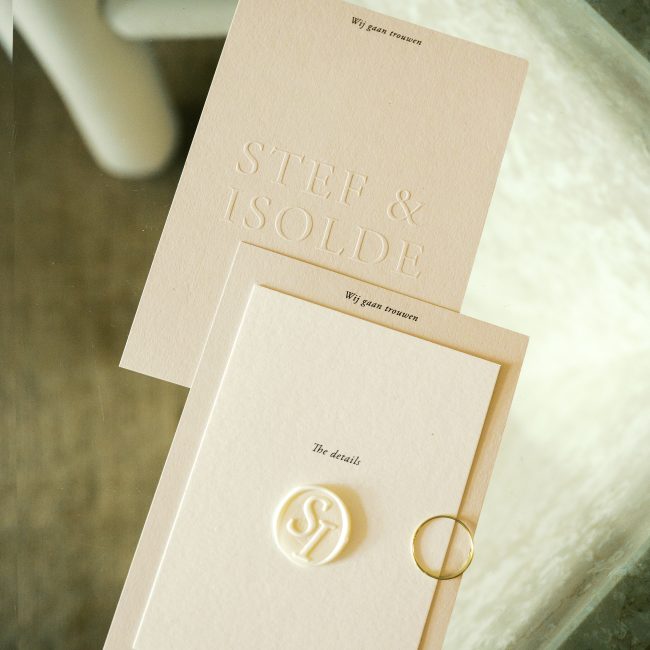 Tevreden? Dan laat ik alles professioneel drukken op de papiersoorten die we samen hebben gekozen. Ik zorg dat alles mooi en op tijd bij jullie wordt geleverd klaar om te versturen of neer te zetten op jullie grote dag.